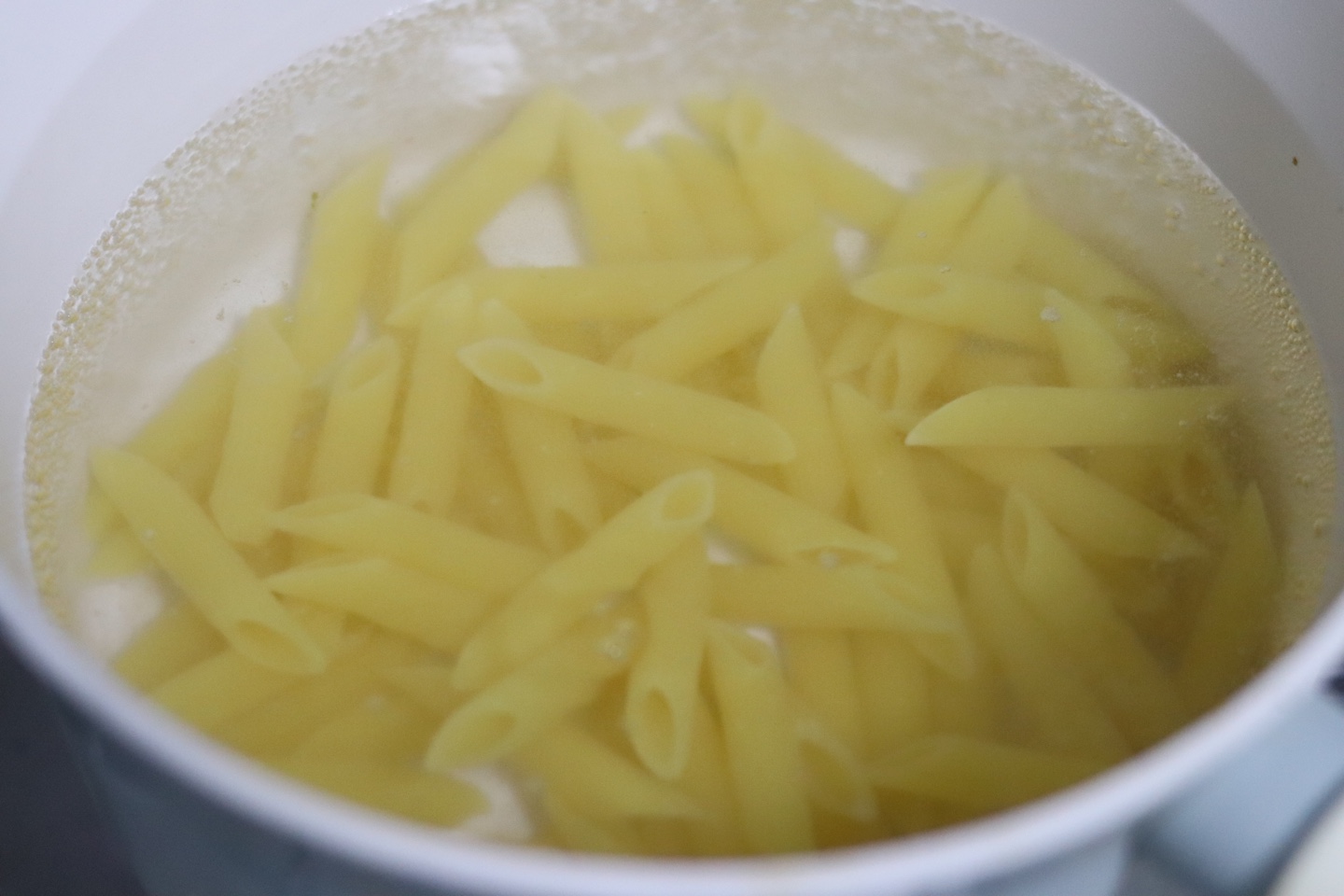 펜네 파스타의 경우 씹는 면적이 커 알단테 상태로 삶게 된다면 딱딱한 부분이 크게 느껴져 먹기 힘들 수 도 있습니다 ㅜㅜ