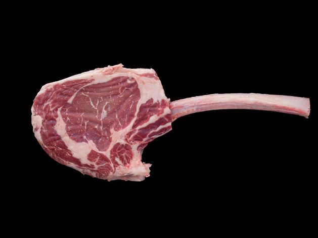 소고기의 토마호크는 손잡이처럼 길다란 갈비뼈가 붙어있는 형태로 정형된 립아이 고기다. 뼈가 붙은 립아이라고 하여 서양에서는 본 인 립아이(Bone-In Ribeye)라고도 불린다.