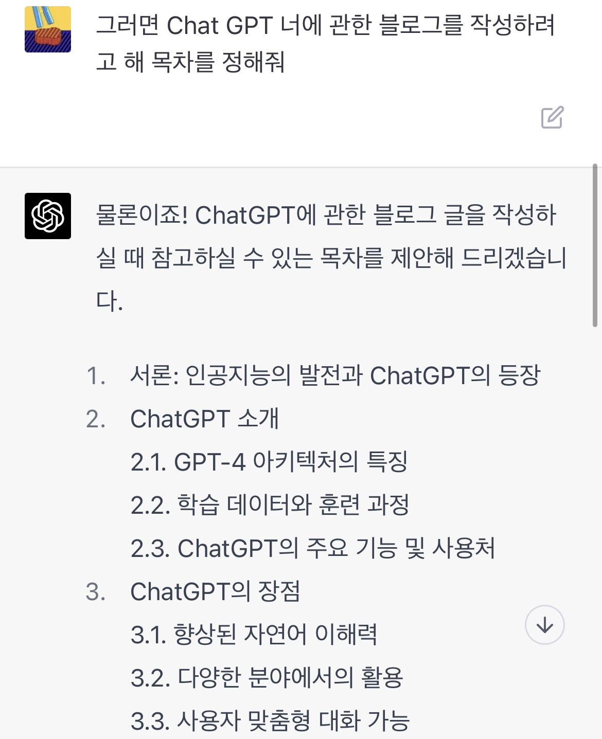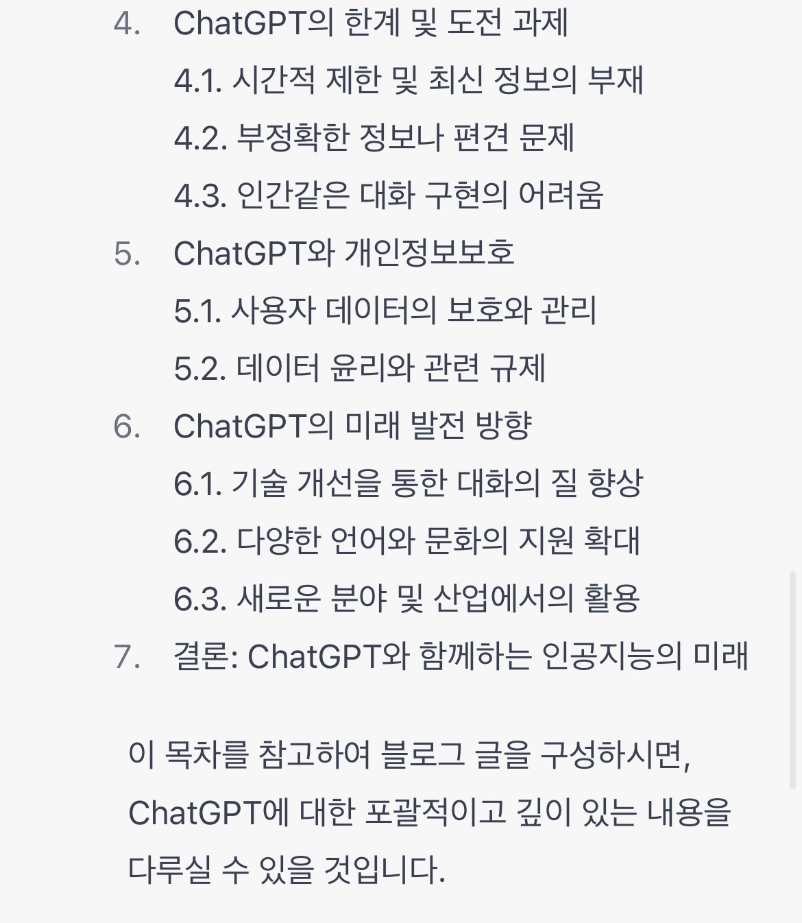 후에 Chat GPT가 알려준 다양한 목차를 이용하여 블로그 글을 작성 해보겠습니다.