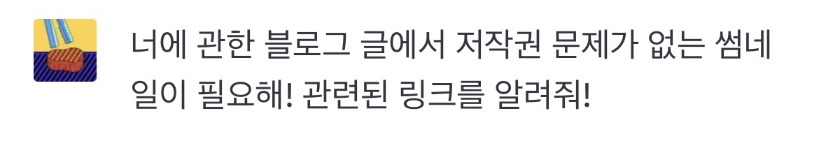 생기지 않는 너에 관한 블로그 썸네일을 달라고 질문 해보겠습니다.